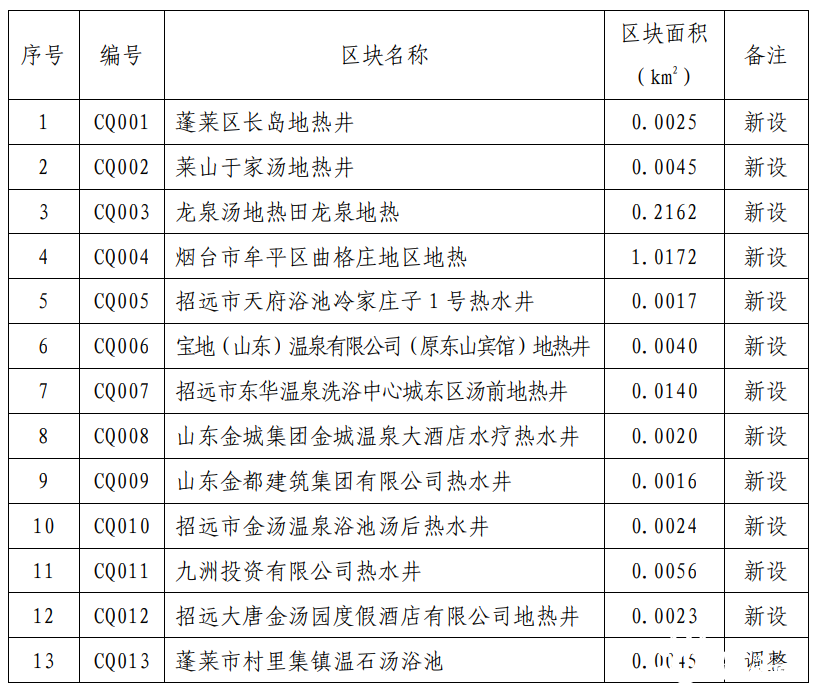 煙臺(tái)市地?zé)衢_(kāi)采規(guī)劃區(qū)塊