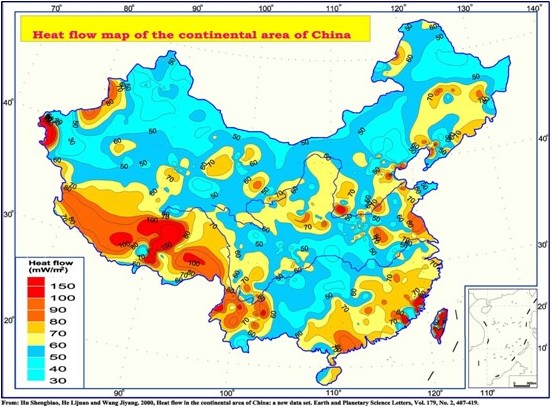 在中國地溫研究中發(fā)現(xiàn),各地區(qū)地溫梯度的變化很大。不同地點(diǎn)地溫梯度值不同,從各地研究經(jīng)驗(yàn)來講,國內(nèi)地下地溫梯度通常為(1-3)℃/100m,分布具有東部高、西部低;南部高、北部低的總趨勢(shì)。