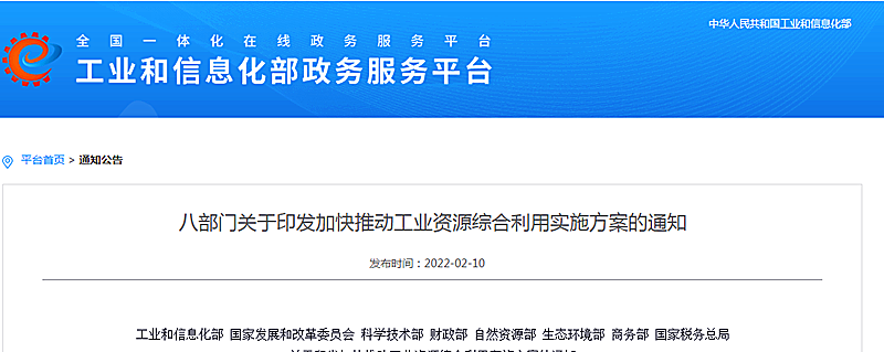 地大熱能地?zé)?多能互補(bǔ)網(wǎng)訊:2月10日,工業(yè)和信息化部、國家發(fā)展和改革委員會(huì)、科學(xué)技術(shù)部、財(cái)政部、自然資源部、生態(tài)環(huán)境部、商務(wù)部、國家稅務(wù)總局等八部門聯(lián)合印發(fā)了《關(guān)于印發(fā)加快推動(dòng)工業(yè)資源綜合利用實(shí)施方案的通知》(下文簡稱《通知》)。