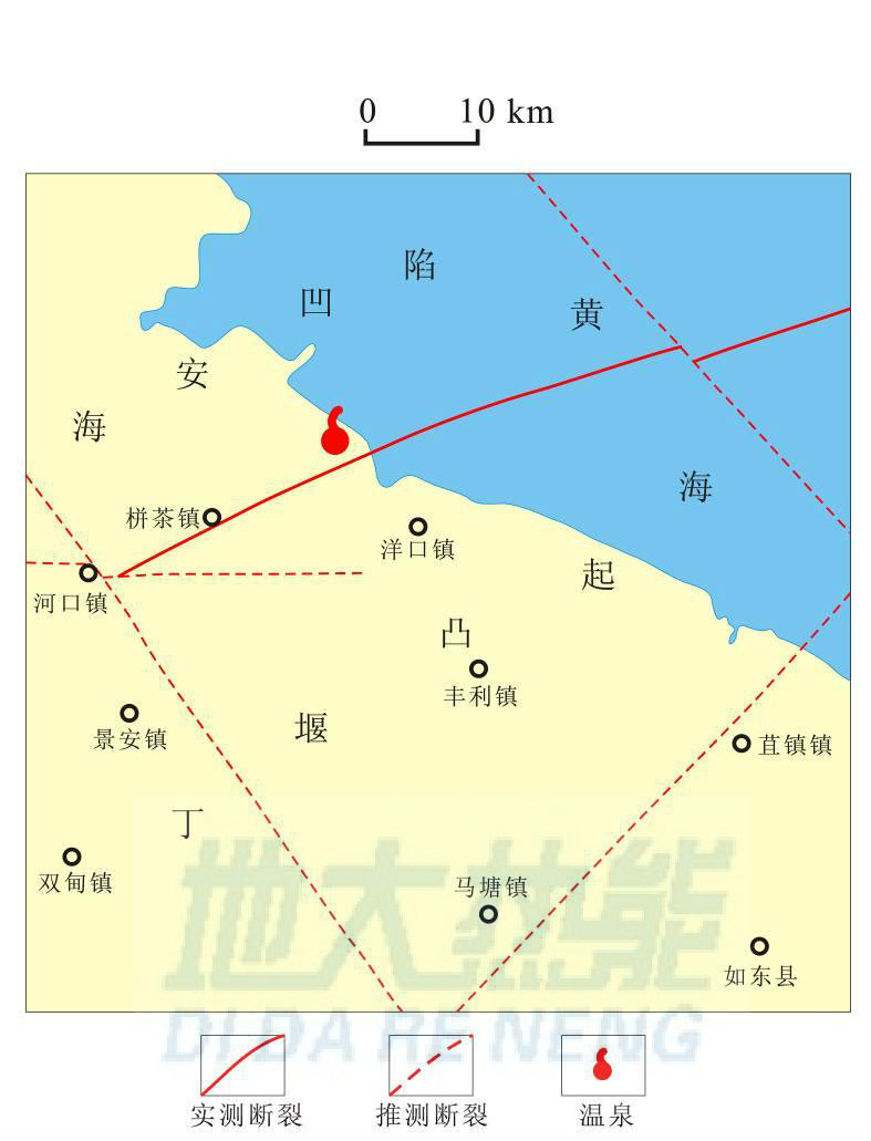 江蘇省如東縣金蛤島溫泉成礦機(jī)制![]() ![]() 江蘇省如東縣金蛤島溫泉區(qū)域地質(zhì)圖 |