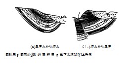 松散沉積物含水層之間的黏性土層,并不完全隔水,且具有微透水性。具有一定水頭 差的相鄰含水層,通過弱透水層發(fā)生的滲透,稱為越流。顯然,隔水層越薄,隔水性越差, 相鄰含水層之間的水頭差越大,則越流補(bǔ)給量越大。盡管單位面積上的越流量通常很小, 由于越流是在弱透水層分布的整個范圍內(nèi)發(fā)生,總的補(bǔ)給量也是相當(dāng)可觀的。
