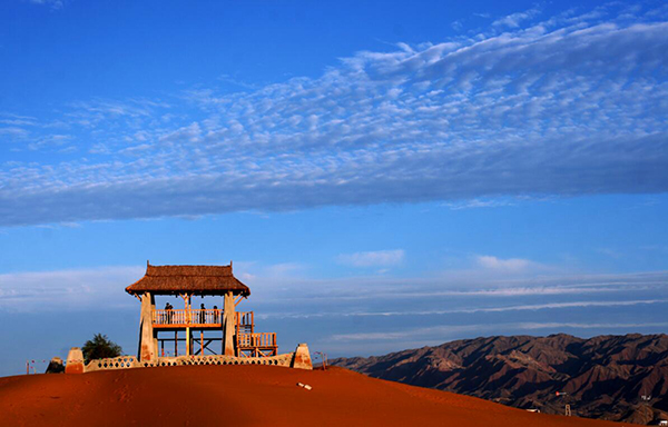 特殊的地理環(huán)境孕育了豐富的旅游資源,在這里,可以看到極具歷史積淀意義的4公里長的明代古長城遺址的宏偉景觀;可以站在湖畔觀賞著多達15種的沙漠生態(tài)魚和136種鳥類,其中黑鸛、大天鵝、金雕分別屬于國家一、二級保護動物;可以在水上樂園與湖水親近;可以在遼闊的沙漠草原中縱情馳騁、在金沙島紫色的花海中徜徉;可以在永安寺里尋找片刻的寧靜,在五彩池畔與荷花仙子心靈神匯。騰格里湖沙漠濕地旅游區(qū)溫泉猶如沙漠里的藍色水晶,如詩如畫的旖旎風(fēng)光,看著格外悅目。