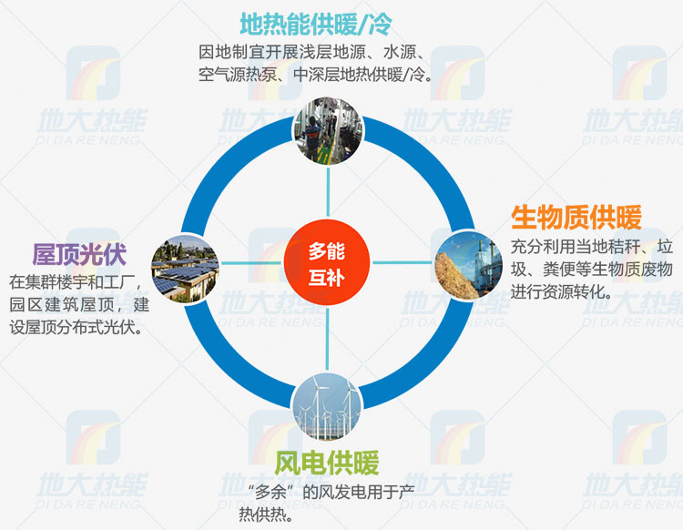 地?zé)?/span>+(風(fēng)能、太陽能、氫能、儲能、水能、生物質(zhì)能等)新能源,根據(jù)因地制宜、多能互補實現(xiàn)能源綜合開發(fā)利用。